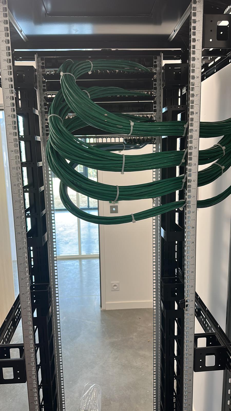 Sur ce chantier, nos équipes ont assuré le raccordement des liaisons au niveau de la baie informatique, avec une attention particulière portée à l’organisation du câblage et à la qualité de finition. L’objectif était de livrer une installation claire, fiable et facile à exploiter dans le temps.